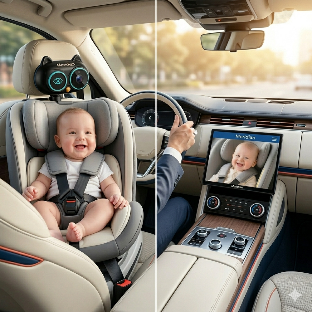 Stay connected to your baby while keeping your eyes on the road. Meridian Guardian Pro delivers crystal-clear 1080p vision day and night, so you always know what's happening in the backseat.